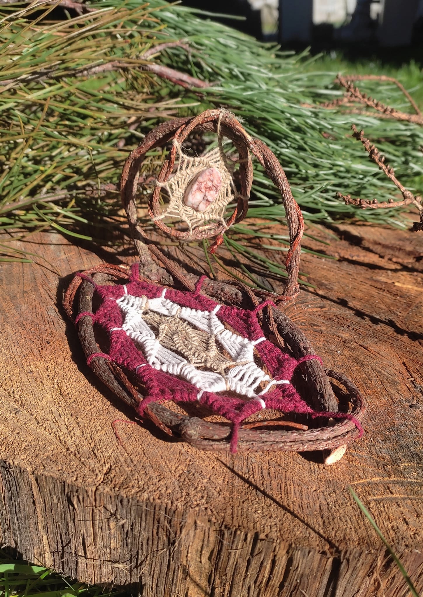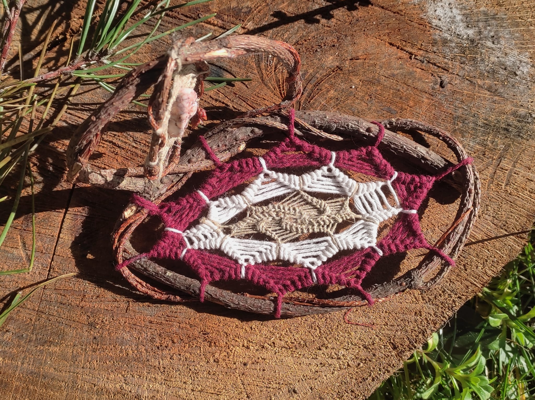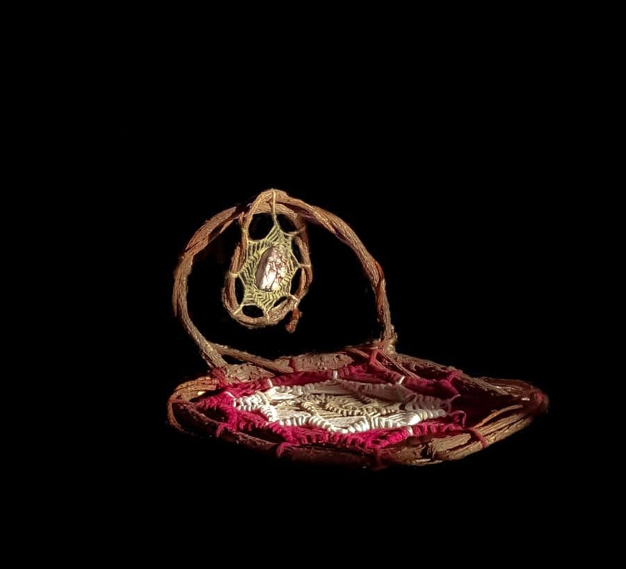 This dresser/cabinet dream catcher represents the cycle of the Moon, a celestial show, dancing around the Earth, with a slow and constant rhythm.